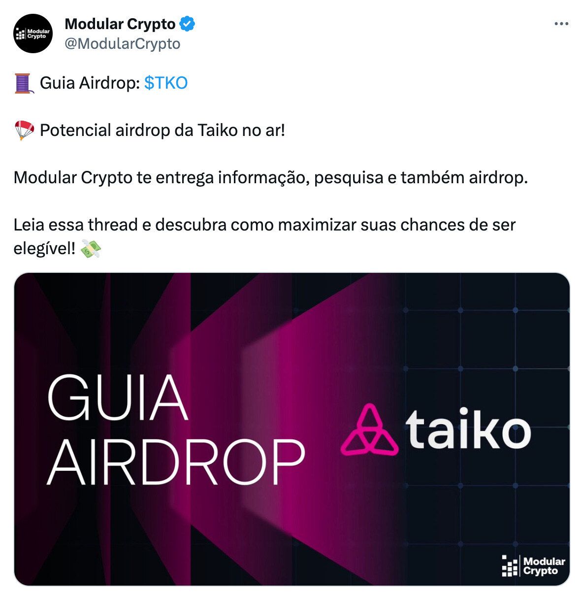 Quem ouve o Modular News pega essas novidades em primeira mão, mas para quem não teve a chance, essa semana soltamos um guia de airdrop da Taiko, uma solução de segunda camada do Ethereum que ainda está em fases de testes: