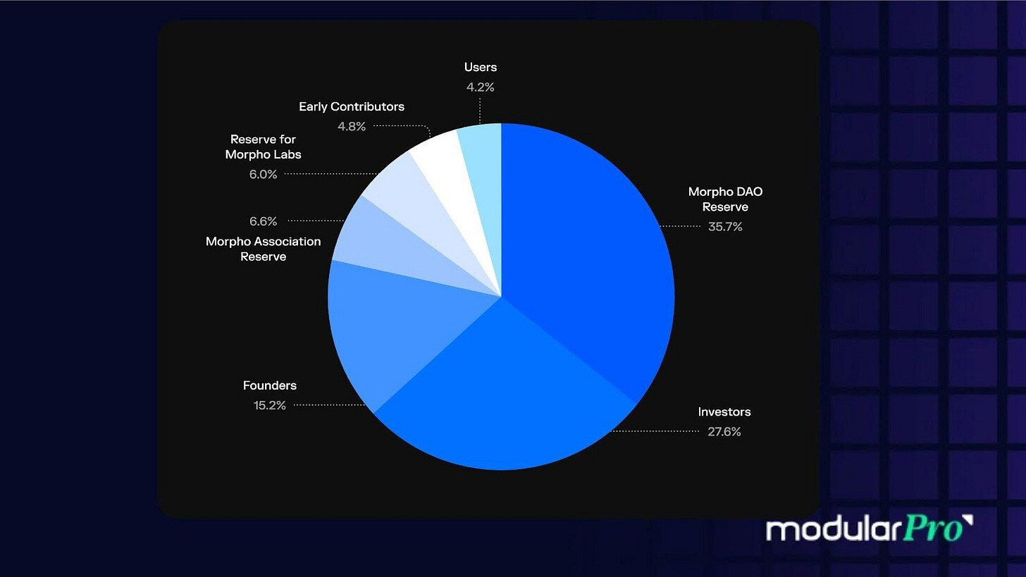 O suprimento máximo de MORPHO é de 1 bilhão de tokens. A distribuição inicial será em Agosto de 2024, para:
