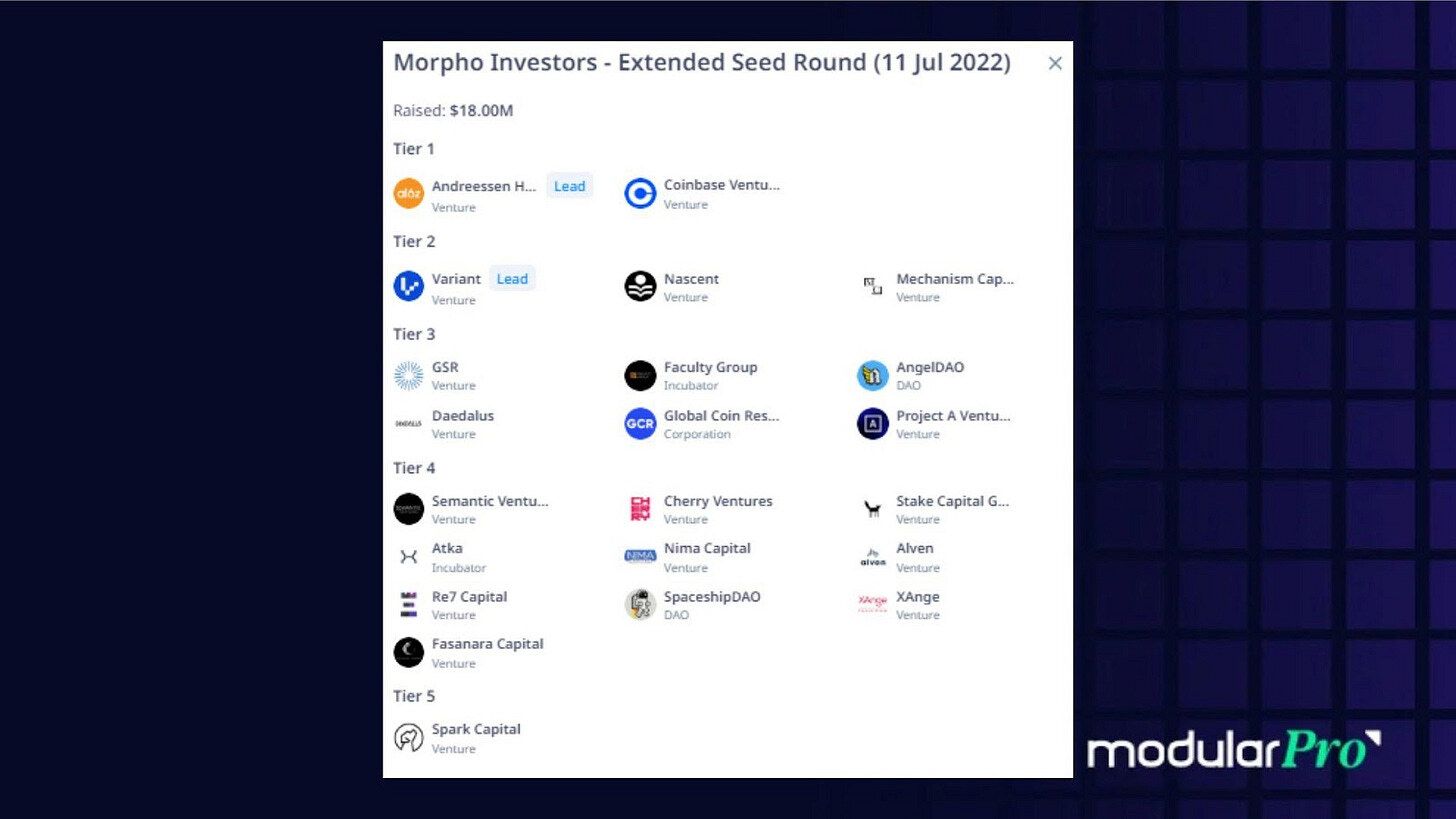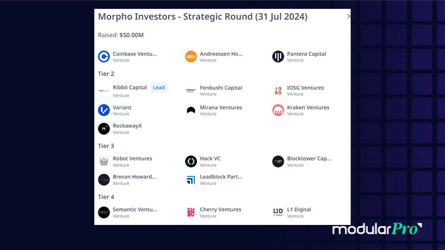 Além disso, acreditamos que o aumento recente no TVL pode ser atribuído à expectativa em torno do lançamento do token MORPHO, levando os usuários a especularem sobre um possível airdrop. O aumento também foi impulsionado pelo anúncio de investimentos de grandes venture capitals, o que reforça a confiança no projeto e atrai mais liquidez.
