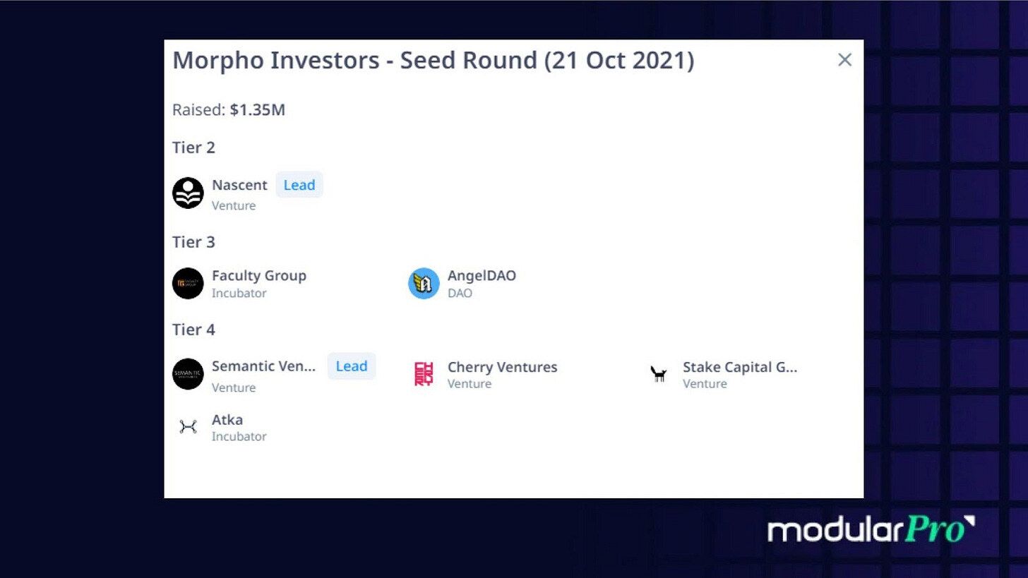 Dentre os investidores de destaques e as rodadas de investimento do projeto estão, até mesmo, um aporte da Pantera Capital de valor não divulgado. Em seu Seed Round, obteve investimentos de $1,35M, contando com investidores, como: