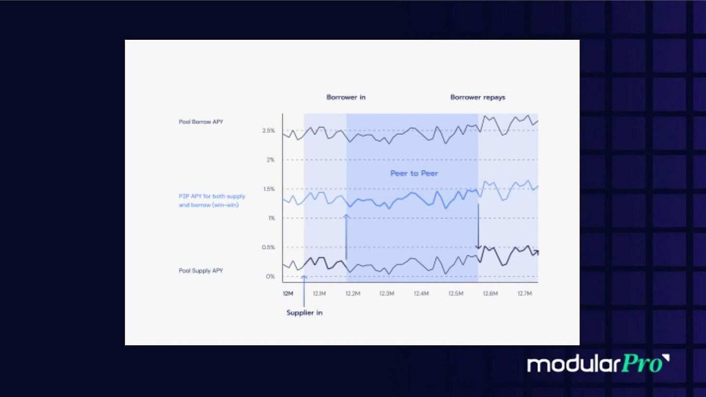 O protocolo garante que os fornecedores de liquidez obtenham pelo menos o mesmo rendimento que obteriam na Compound, mas potencialmente mais se for encontrada uma correspondência direta P2P com um tomador de empréstimo. O APY no modelo P2P é benéfico para ambas as partes, e os programas de incentivos podem influenciar a dinâmica dessas taxas.