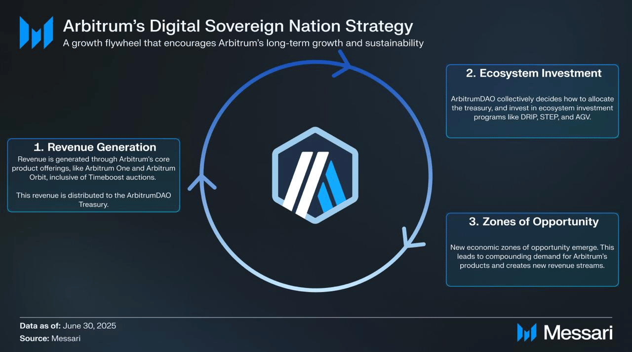 Isso se conecta diretamente à estratégia de flywheel da Arbitrum DAO: o protocolo captura valor a partir da atividade econômica do ecossistema e reinveste esse valor de forma contínua em grants, melhorias de infraestrutura, crescimento comunitário e novas iniciativas. Esse ciclo virtuoso, onde crescimento gera recursos, e recursos geram ainda mais crescimento, posiciona a Arbitrum não apenas como uma rede escalável, mas como um ecossistema sustentável e auto-reforçado.