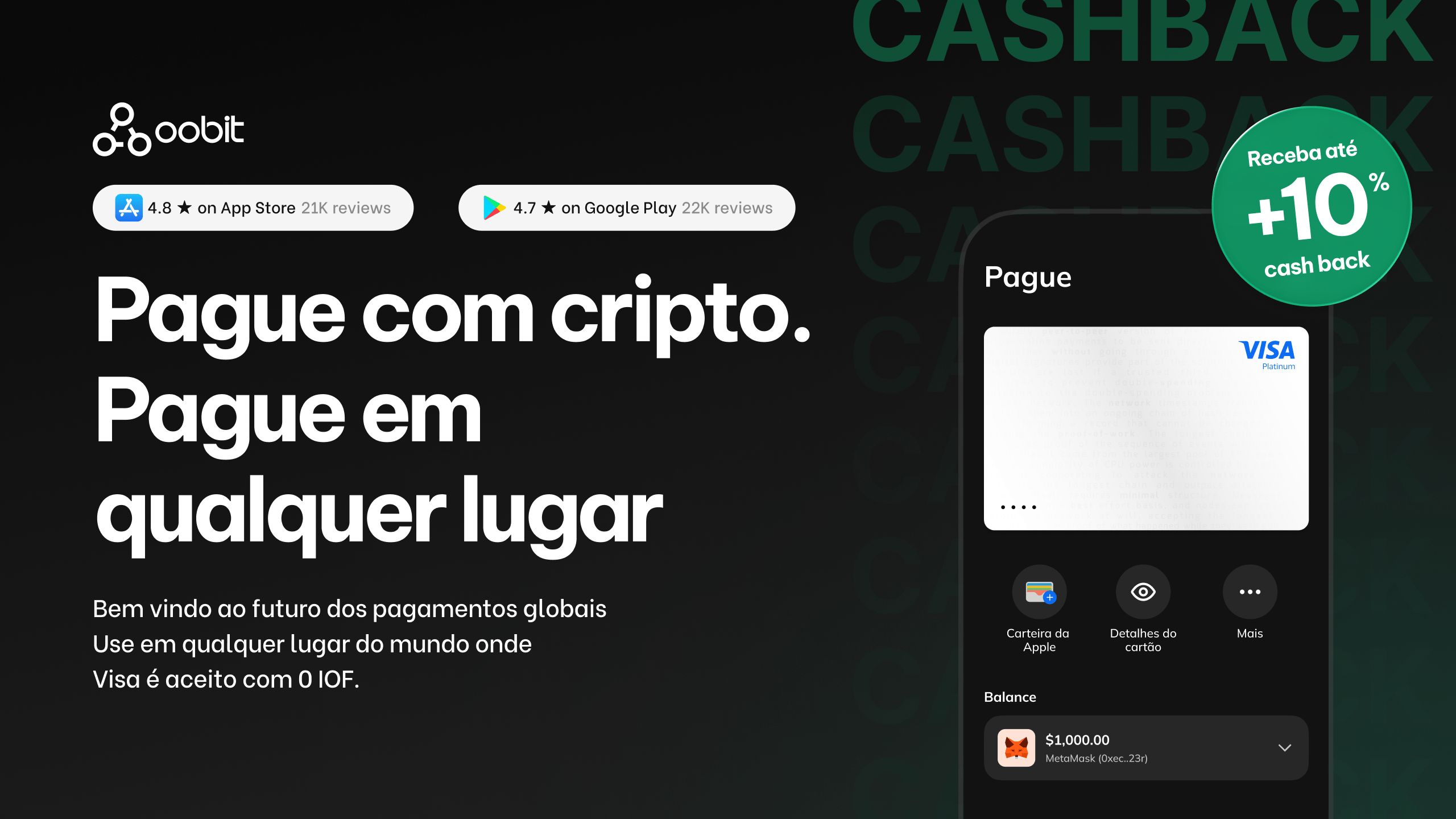 O app número 1 para usar cripto no dia a dia: pague em qualquer lugar e ganhe até 10% de cashback.