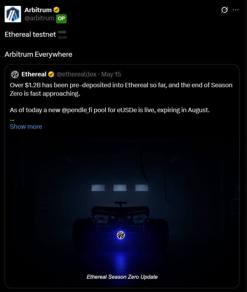 A Ethereal vai lançar sua testnet em breve — vale ficar de olho!🔗 https://x.com/etherealdex/status/1923002870468882903