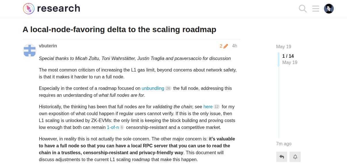 Hoje, Vitalik Buterin propôs mudanças na forma como usuários interagem com a rede Ethereum, com foco em privacidade, resistência à censura e viabilidade de rodar nodes pessoais mesmo com o aumento do volume de dados. A ideia central é um novo tipo de node chamado partially stateless node, que permite manter apenas os dados mais relevantes para o usuário, sem precisar armazenar toda a blockchain. Isso preserva o acesso local, privado e confiável à rede, sem depender de serviços externos que podem rastrear ou bloquear informações.
