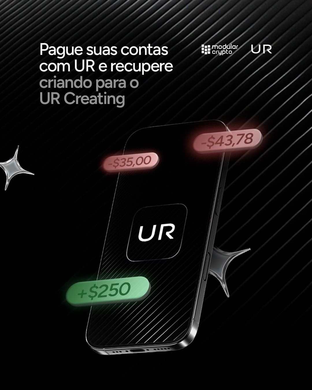 Poste com #URCreating, marque @ModularCrypto e @UR_global, e pronto — você já tá no ranking.