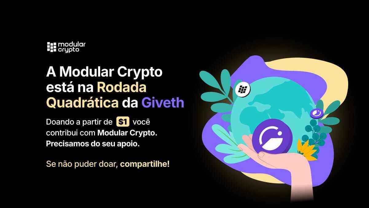 A Modular Crypto está participando da rodada de financiamento da Giveth. Se você acredita no nosso trabalho com educação, conteúdo e eventos Web3 no Brasil, essa é a hora de apoiar!