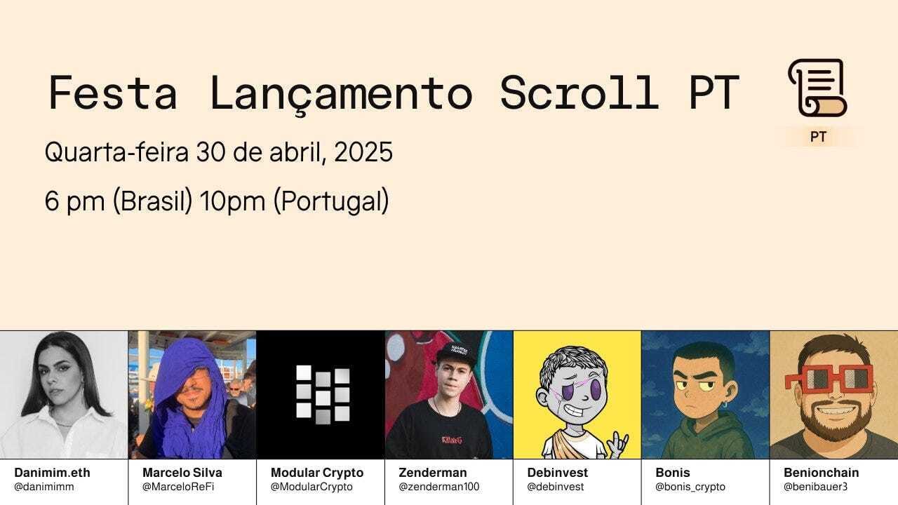 Na quarta-feira, participamos da estreia oficial da Scroll em português!Foi um Space especial com vários nomes do ecossistema brasileiro — da galera da ReFi à turma builder.Mais uma ponte construída entre comunidades que estão fazendo a diferença.
