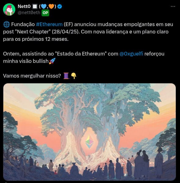 A Ethereum Foundation separou conselho e gestão e nomeou dois co-CEOs para liderar a execução estratégica com foco em privacidade, inovação e resistência à censura. A nova fase mira melhorias de escalabilidade e experiência do usuário, com EIPs propondo aumento de gás e blobs para impulsionar a rede. Quer saber mais? Leia a thread que o Netão fez.