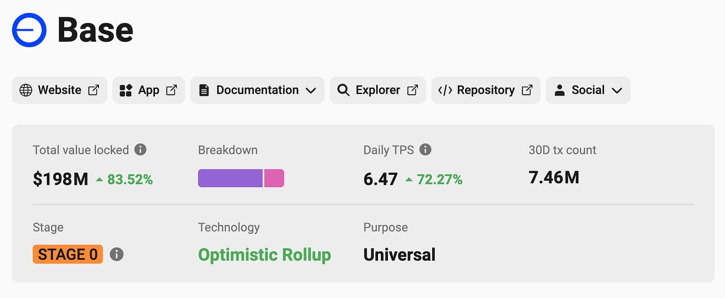E o movimento está sendo impressionante, com menos de 1 semana de lançamento oficial, a Base já conta com quase 200 milhões de dólares em valor total travado na rede, ocupando a posição de 5ª maior rede de segunda cama em TVL, segundo site L2Beat.