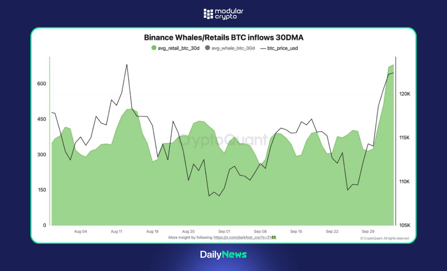 📊 Varejo acordou — Depósitos de carteiras com menos de 1 BTC disparam na Binance, sinalizando o retorno dos pequenos investidores.