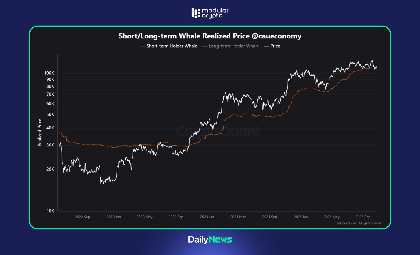 Segundo dados da CryptoQuant, o preço do Bitcoin voltou a ficar acima de US$ 112.700, ultrapassando o “preço realizado” das novas baleias — ponto em que seus investimentos médios voltam a dar lucro.