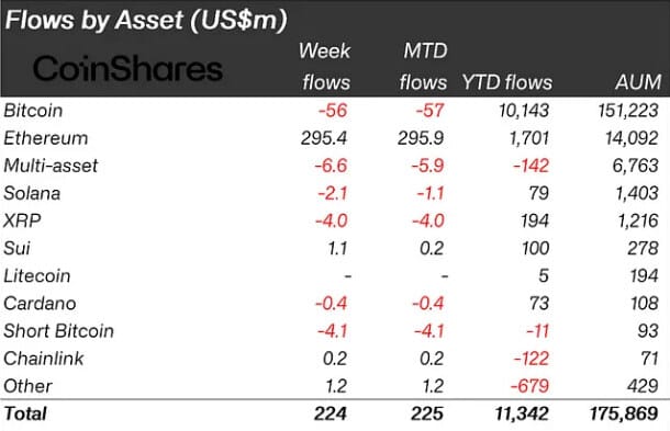 Nesse tempo todo, eu nunca vi fundos de altcoins superarem os fluxos dos fundos de Bitcoin semanalmente. Até duas semanas atrás, quando os fundos ligados ao Ethereum passaram de US$ 321 milhões no fluxo semanal, eclipsando com facilidade os outros ativos que a CoinShares acompanha.