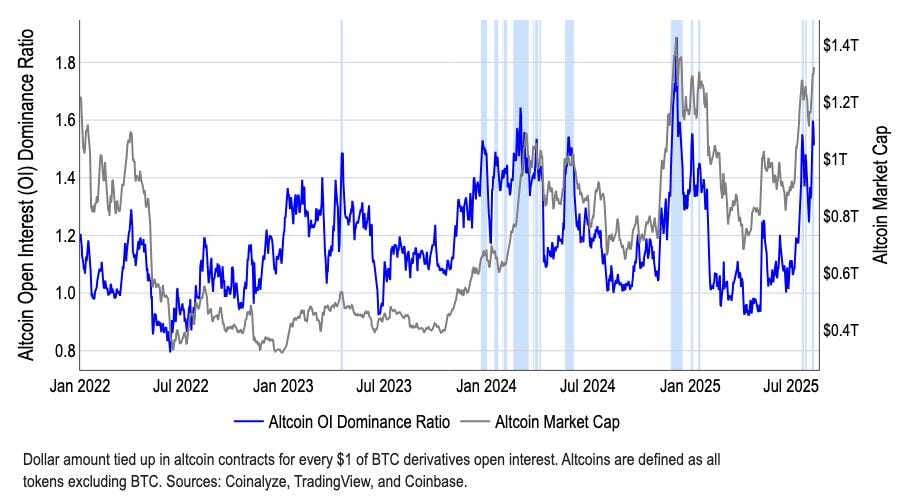 📈 Coinbase aposta em altseason em setembro — Dominância do BTC cai para 59% e mercado de alts já soma US$ 1,4 tri. Tesourarias institucionais acumulam ETH e tokens como LDO, ARB, OP e ENA podem amplificar movimento.