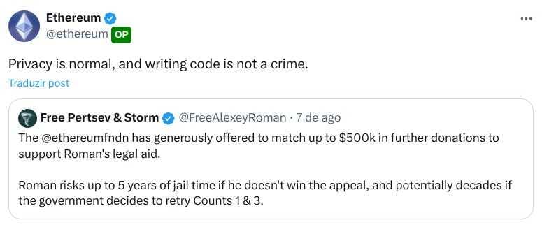 “Se o preço do ETH sobe, atrai atenção, atrai devs, atrai usuários. E isso retroalimenta todo o ecossistema.”