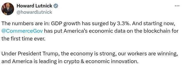 O Departamento de Comércio dos EUA começou a publicar dados oficiais, como o PIB, diretamente em blockchains públicas — incluindo Bitcoin, Ethereum, Solana, Tron, Stellar, Avalanche, Arbitrum, Polygon e Optimism. A medida foi anunciada pelo secretário Howard Lutnick como um “proof of concept” para dar mais transparência e acessibilidade às estatísticas econômicas do país.