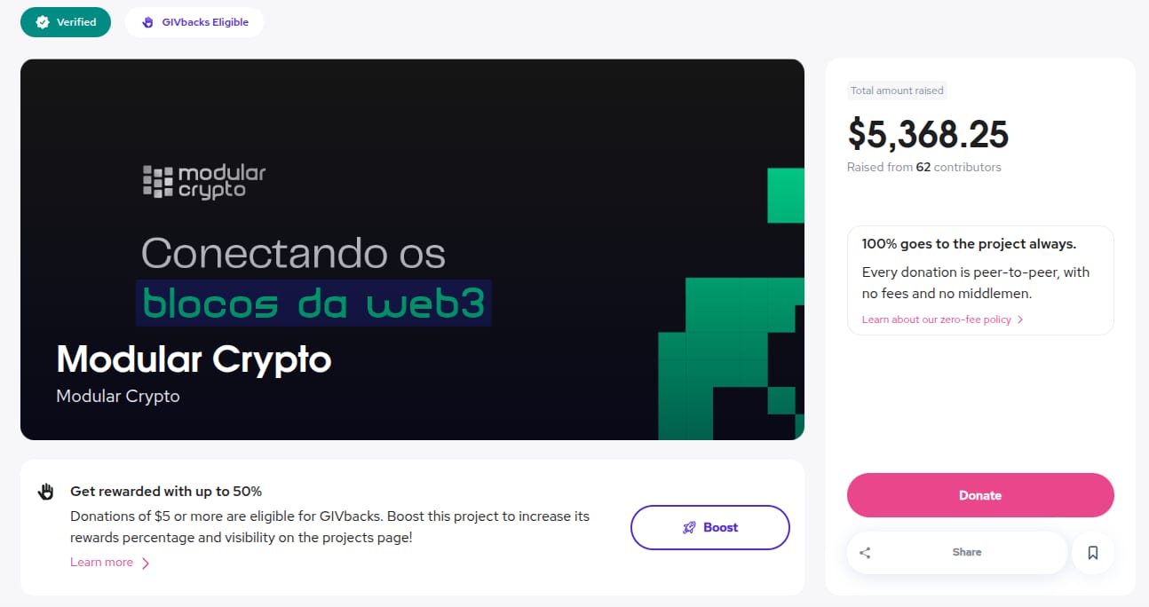 A Modular Crypto participa da atual rodada quadrática da Giveth 🌱