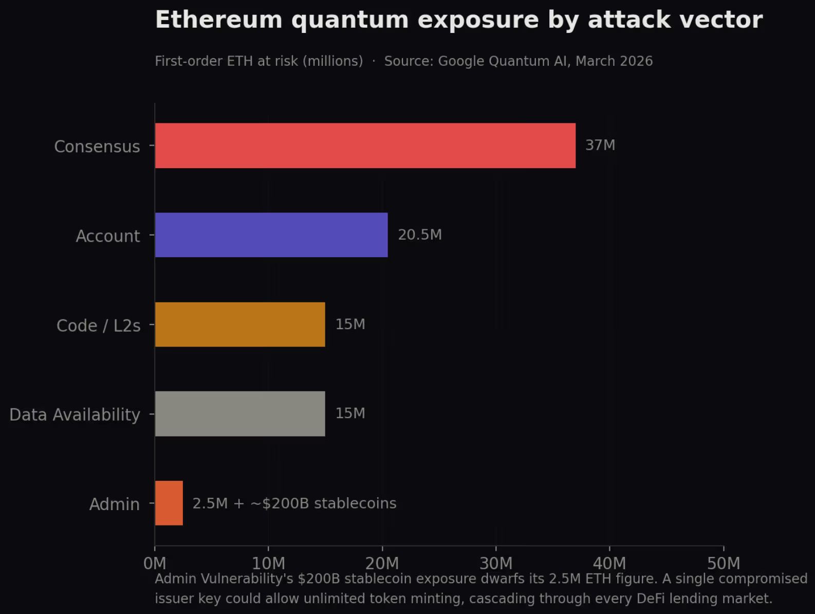 Um novo estudo do Google Quantum AI aponta que computadores quânticos podem explorar cinco vulnerabilidades críticas no Ethereum, colocando mais de US$ 100 bilhões em ativos em risco. Entre os principais pontos está a exposição permanente das chaves públicas, além de riscos em smart contracts, staking, redes Layer 2 e no sistema de verificação de dados, ampliando o impacto potencial para todo o ecossistema.