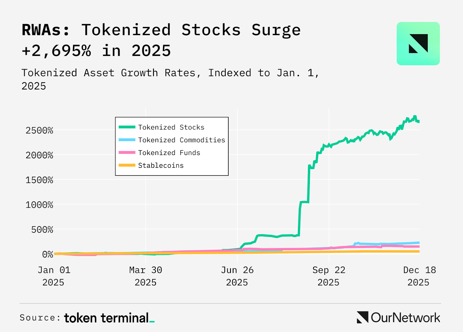 Apenas em 2025, ações tokenizadas cresceram incríveis 2695%: