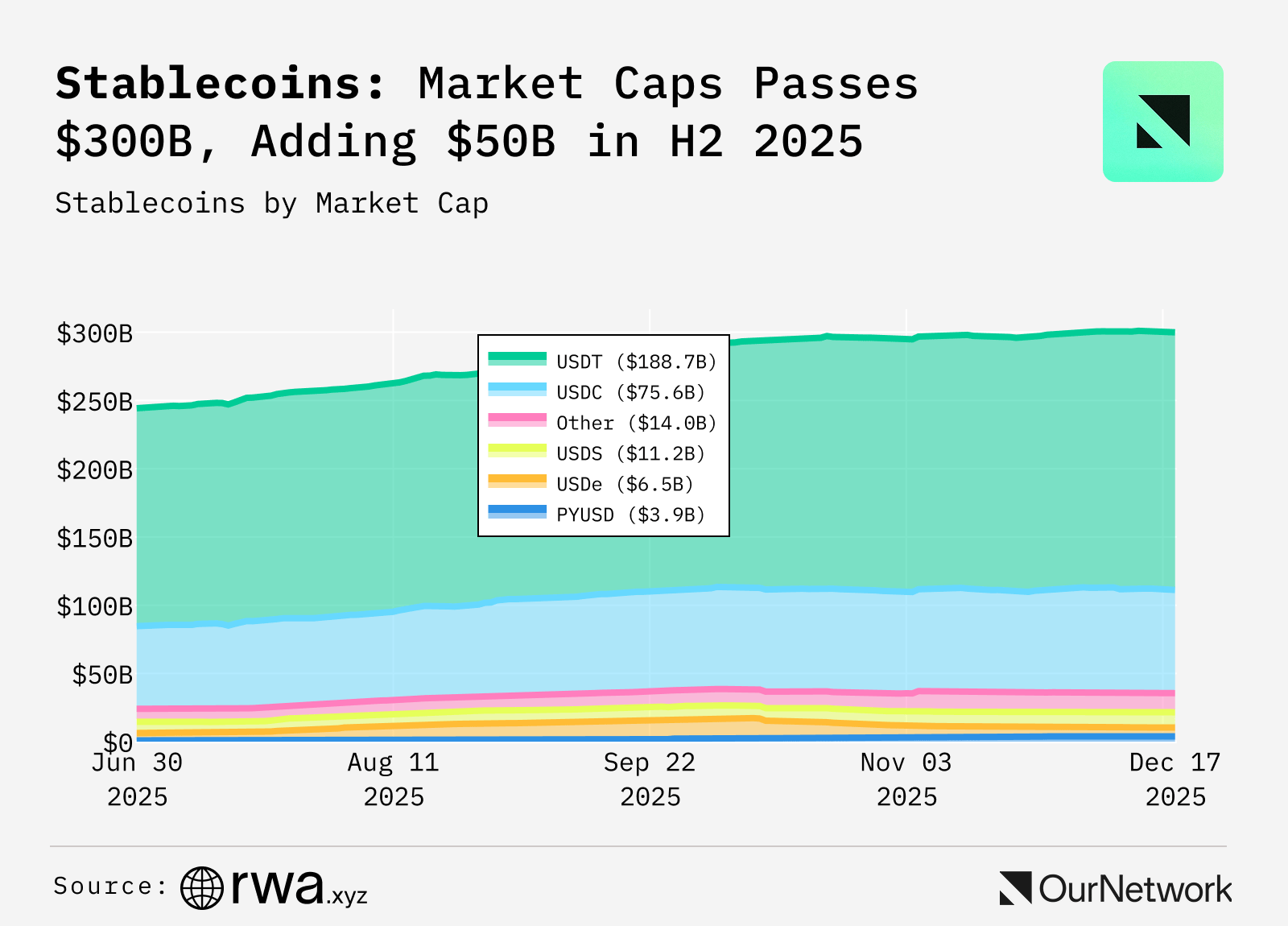 O mercado de stablecoins, por exemplo, alcançou a marca de $300 bilhões de capitalização