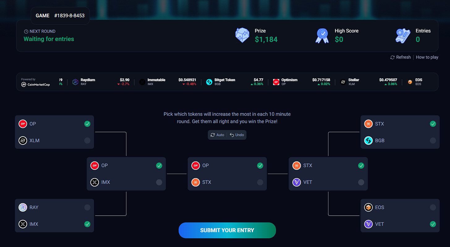 💡 Tudo acontece on-chain, com os preços puxados direto do CoinMarketCap.💸 Só 5 USDC por entrada.🎮 Partidas rolando o tempo todo.