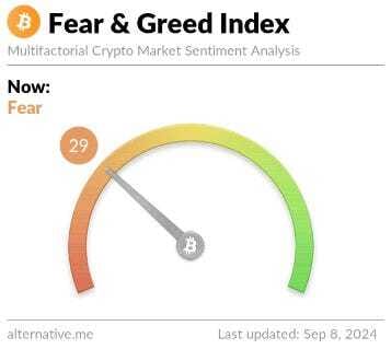 Índice Medo & Ganância permanece no MEDO, mas subiu ligeiramente, indo de 26 para 29.