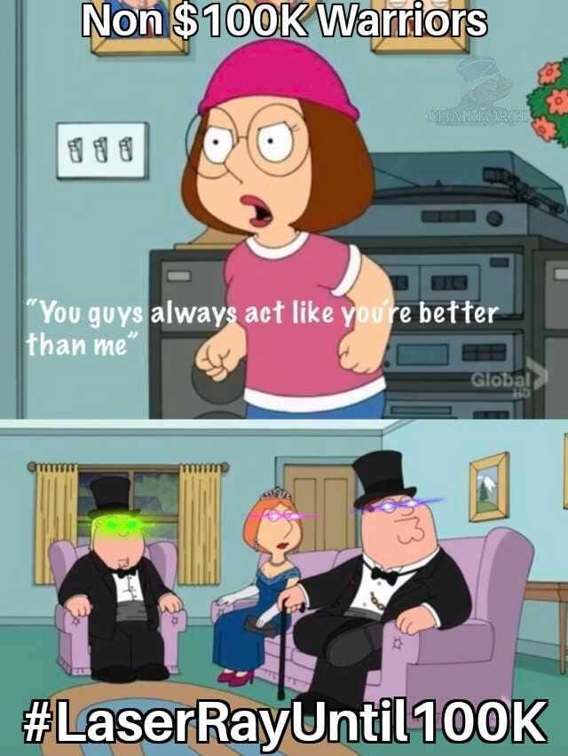 Em fevereiro de 2021, com o preço do Bitcoin em torno de 42 mil dólares, Chairforce teve a ideia de colocar laser eyes nos avatares dos membros da Meme Factory. A ideia era lançar a campanha quando o preço do Bitcoin atingisse 50 mil dólares, e assim nasceu a hashtag #LaserRayUntil100K.