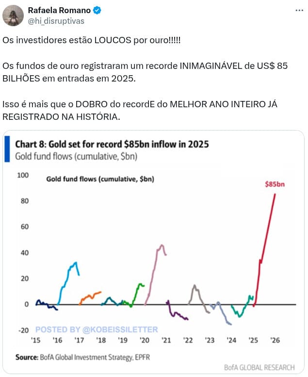 Os fundos de ouro registraram um recorde INIMAGINÁVEL de US$ 85 BILHÕES em entradas em 2025.