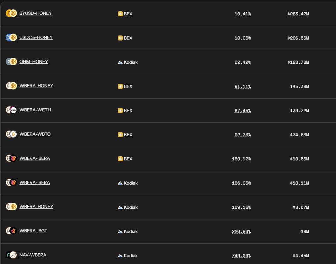 1) Infrared FinancePara iniciar o farm na Infrared, é interessante selecionar uma pool com alta liquidez, de preferência acima de US$ 1 milhão para reduzir riscos de impermanent loss e garantir eficiência.