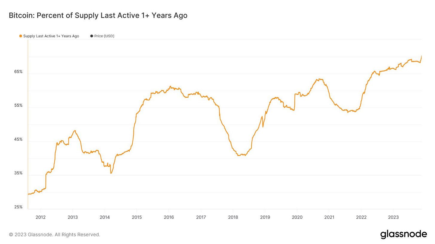 O bitcoin atingiu nesta semana mais um marco importante em relação ao sentimento dos investidores para o ativo: agora, mais de 70% de toda a oferta da criptomoeda está parada há mais de um ano.