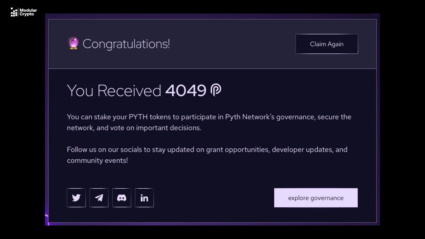 Fomos recompensados com o airdrop da PythNetwork 💰Importante ressaltar que ensinamos a interagir com esse protocolo na semana airdrop. Não foi elegível? Não se preocupe, assista nossa imersão completa em airdrops aqui e aumente suas chances de ser elegível para os próximos airdrops!