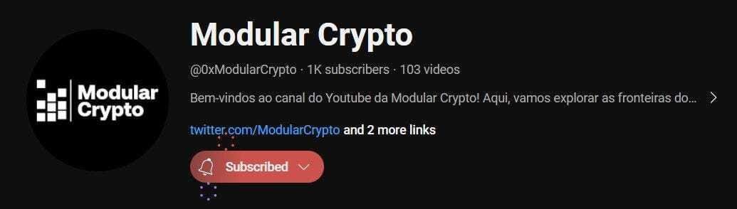 Batemos 1k inscritos no canal da Modular Crypto no YouTube! Isso é graças a cada um de vocês que nos apoiam de todas as formas e quem ainda não segue nosso canal, confere aqui. 👈🏼