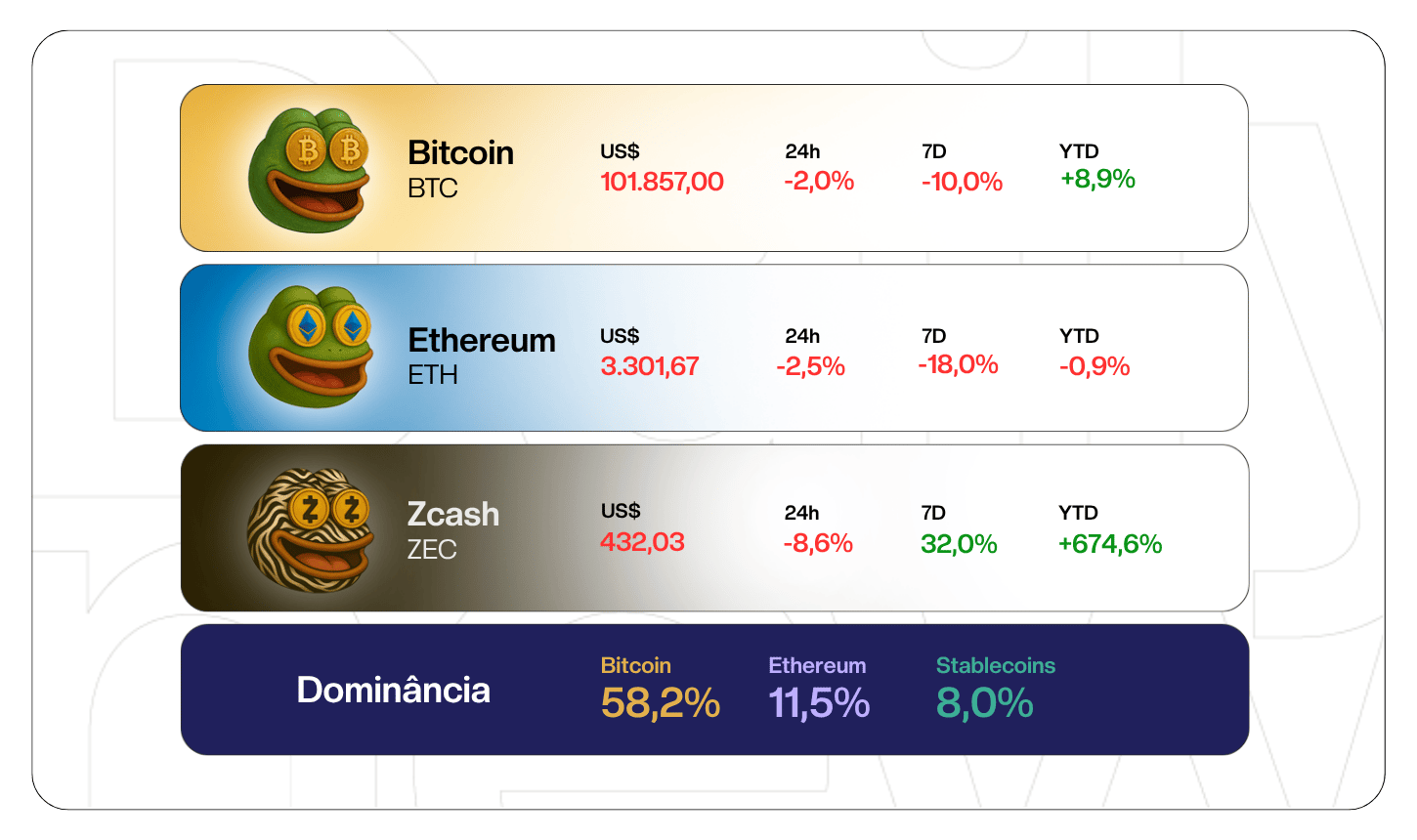 🦓 Esta edição é trazida pela Zcash, de pioneira a referência. Privacidade por padrão: remetente, destinatário e valores protegidos — sua liberdade financeira, verificável e sem concessões.