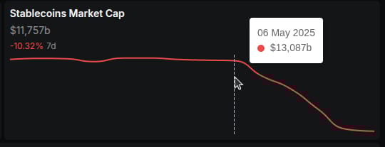 Após revelar um bug grave que permitia saques infinitos via provas inválidas, a Solana viu US$ 11 milhões saírem do DeFi em 24h. A falha no ZK ElGamal foi corrigida rapidamente, mas o processo — feito em sigilo por mais de 70% dos validadores em menos de 48h e antes desse bug se tornar público — reacendeu críticas sobre centralização. Embora eficiente, a resposta reforça a pressão por mais transparência na governança da rede. Nos últimos 7 dias, a Solana viu o TVL de stablecoins cair 10%, saltando de $13,08 bi para atuais $11,75 bi. Coincidência ou não, essa queda começou um dia após isso ter vindo à tona.