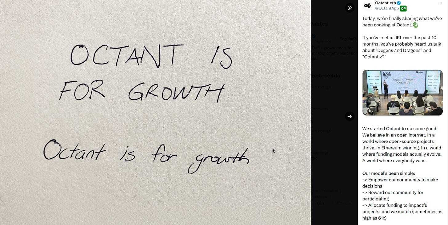 Mais de 2.500 ETH já foram distribuídos pela Octant para projetos como Revoke, EAS, Protocol Guild, Giveth e agora... nós! Leia aqui o manifesto Octant v2.