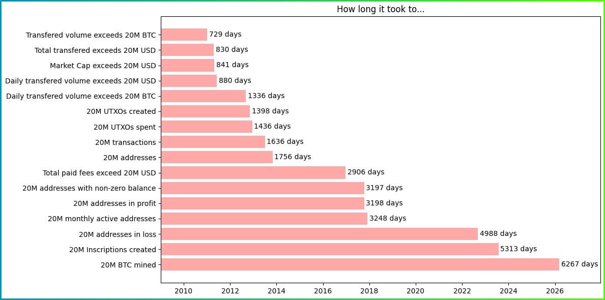 O último 1 milhão de bitcoins levará cerca de 114 anos para entrar em circulação.