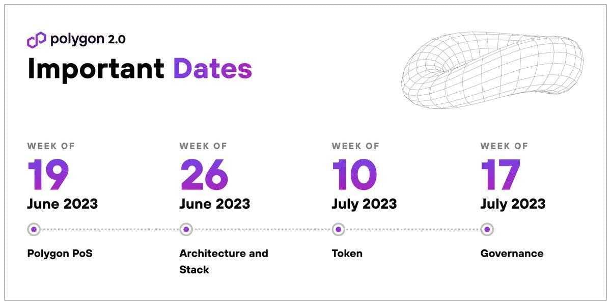 O anúncio também veio acompanhado de algumas datas importantes, como um roadmap da Polygon 2.0, dentre elas "julho de 2023" onde encontramos um suposto "token". Teremos um novo airdrop pela frente?