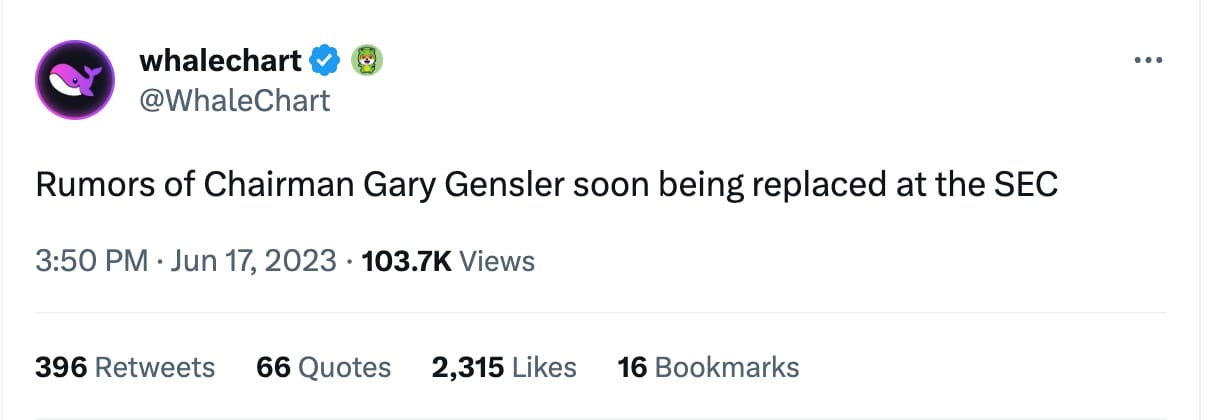 E não para por aí! Existem outros rumores que estão circulando no mercado de que Gary Gensler poderia mesmo estar próximo de ser substituído: