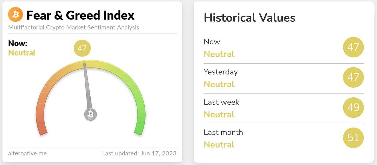 Índice Medo & Ganância (Fear & Greed Index) fecha a semana no neutro
