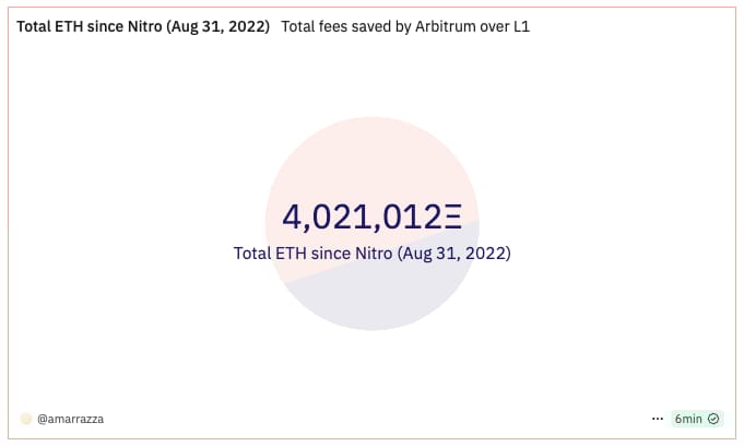 Desde então, a Arbitrum One já economizou mais de US$ 17 bilhões em taxas de gas para seus usuários.