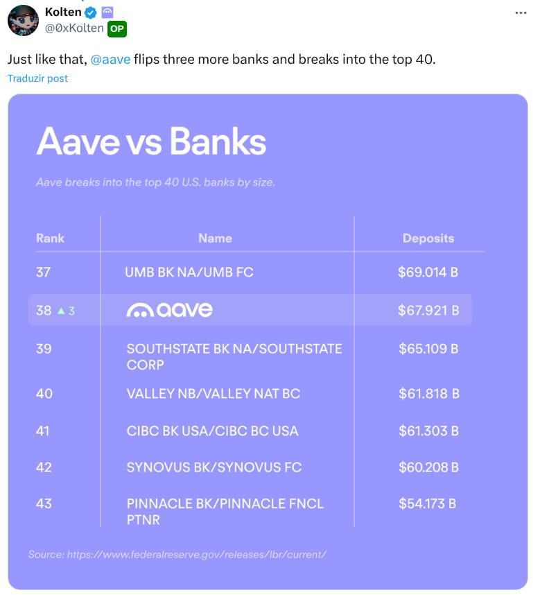 “E assim, AAVE flipa mais três bancos e entra no top 40.”