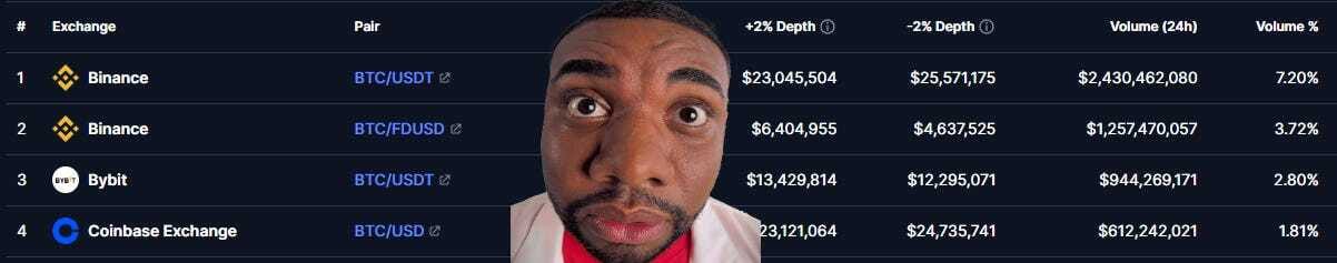Por isso, vou inflar meu volume pra conseguir mais listagens! Mas esses agregadores MALDITOS introduziram esse market depth de 2% pra dar alguma noção ao varejo sobre volumes orgânicos.