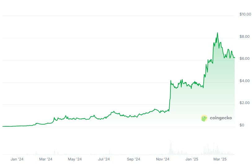 Nunca foi incomum encontrar analistas questionando a performance do token nativo da Mantra (OM), já que ele só subia. No gráfico acima, é possível ver que não teve essa de correções dentro do ciclo de alta, apenas um crescimento constante.