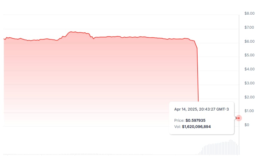O token OM, do ecossistema Mantra, colapsou em questão de horas entre os dias 13 e 14 de abril.