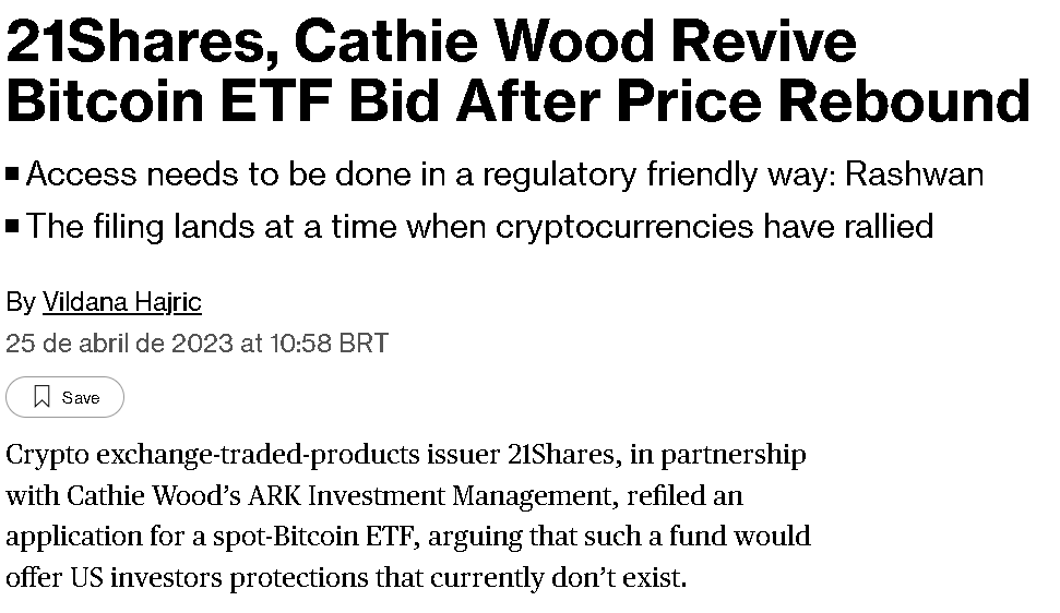 Em Abril, tivemos a atualização da Shapella Upgrade na Ethereum e já percebíamos que o ânimo do mercado estava aflorando, principalmente após a ARK Invest e 21Shares realizarem uma nova solicitação de ETF do BTC.