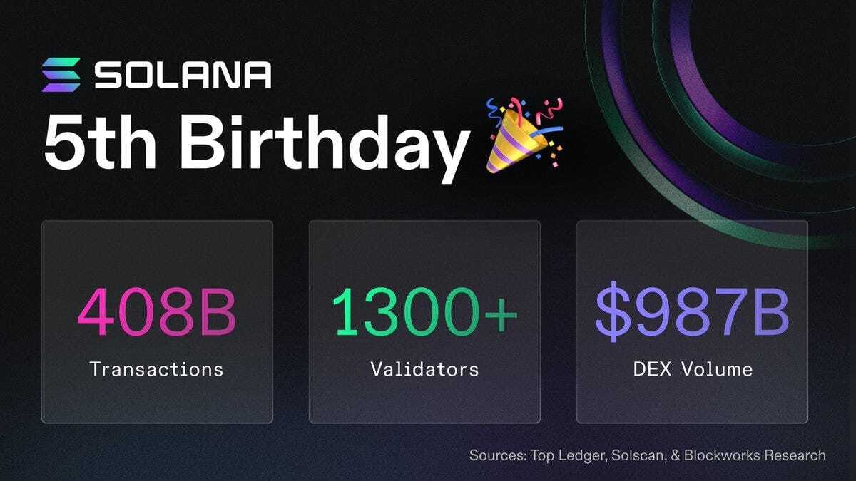 Com mais de 408 bilhões de transações executadas, a Solana completou cinco anos. No entanto, a atividade recente na rede caiu, especialmente em memecoins. A expectativa agora é pelo Firedancer, novo cliente de validação que promete melhorar escalabilidade e segurança. Solana também é cotada para inclusão em ETFs e em reservas institucionais.