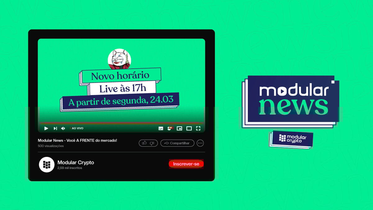 📺 E atenção: a partir de amanhã, o Modular News passa a ir ao ar às 17h, no nosso canal do YouTube. Agora mais perto do fechamento do mercado, com as notícias mais quentes do dia.