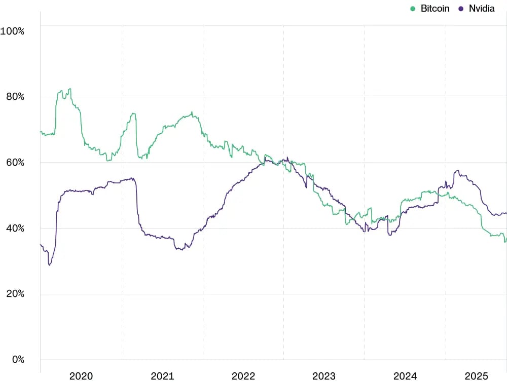Além de preços mais altos, a Bitwise projeta um Bitcoin estruturalmente mais estável e com menor correlação com ações em 2026. Dados da gestora mostram que, ao longo de 2025, a volatilidade do Bitcoin já ficou abaixo da de ações populares como Nvidia, refletindo uma base de investidores mais diversificada e a maturação do ativo como classe de portfólio. No mesmo sentido, a Bitwise espera que avanços regulatórios e financeiros próprios do setor cripto reduzam a dependência do desempenho das bolsas tradicionais. Complementando esse cenário, a casa projeta uma explosão no número de ETPs de cripto em 2026, potencialmente mais de 100 novos produtos… após mudanças nas regras da SEC, o que ampliaria significativamente o leque de exposição institucional e reforçaria a tese de maior liquidez, sofisticação e integração do mercado cripto ao sistema financeiro global.