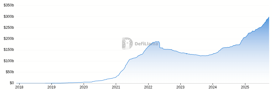 O mercado de stablecoins ultrapassou US$ 300 bilhões pela primeira vez, consolidando seu papel como elo entre TradFi e cripto. A Tether segue dominante com US$ 176 bi, enquanto a Circle (USDC) soma US$ 74 bi e a Ethena (USDe) desponta como a novidade com US$ 14,8 bi. Ethereum concentra a maior parte dessa liquidez (US$ 177 bi), seguido por Tron e Solana. Analistas projetam que o setor pode chegar a US$ 1,2 trilhão até 2028, sustentado por regulamentação favorável, tokenização e a expansão de stablecoins corporativas.