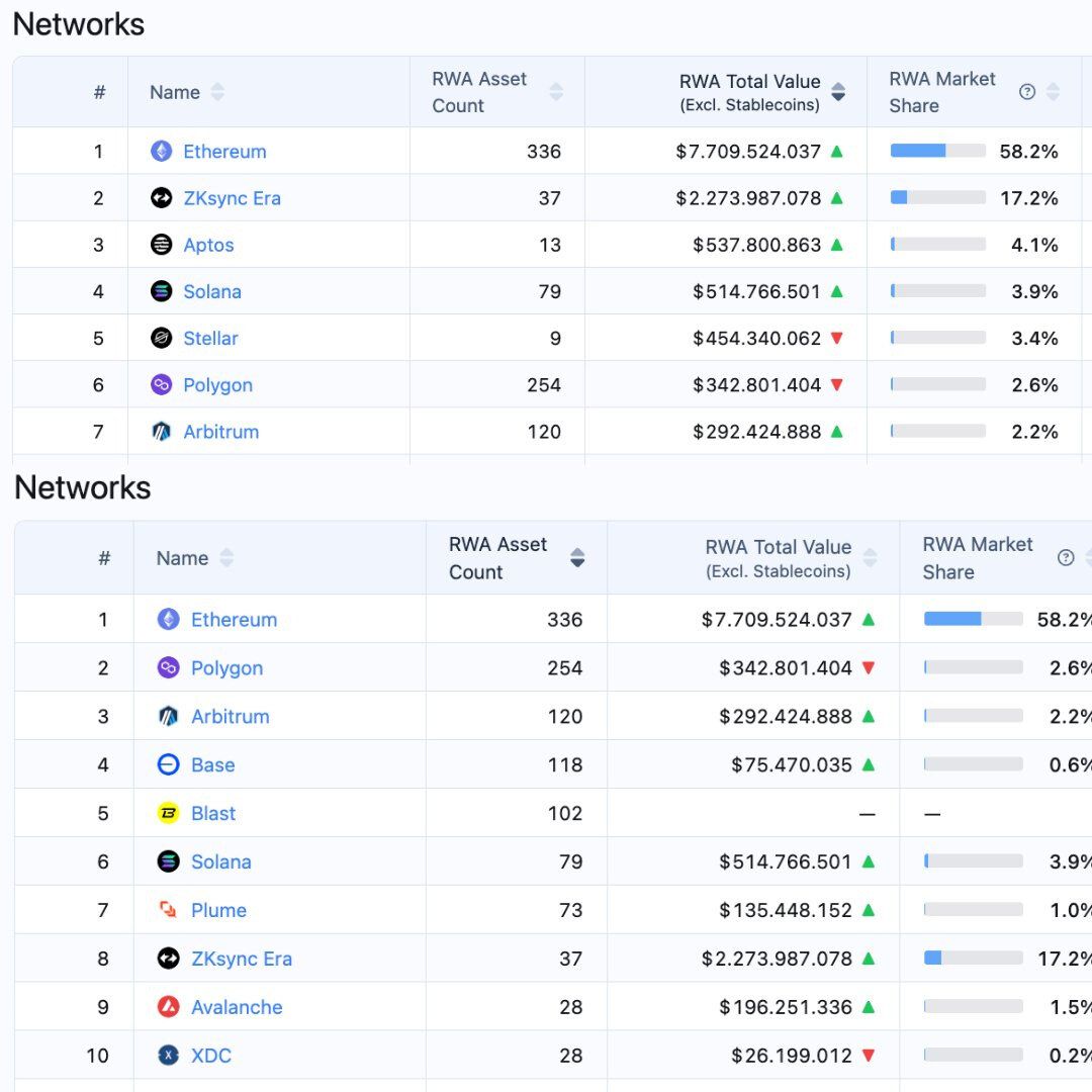 Atualmente, segundo dados do RWA.xyz, a Arbitrum ocupa o 7º lugar em valor total de RWAs. Mesmo assim, o crescimento recente impressiona: mais de 15% de aumento nos últimos 30 dias. Além disso, a Arbitrum já aparece em 3º lugar no número de produtos RWA disponíveis, com 120 listagens. Em comparação, a Polygon possui mais que o dobro de produtos, mas com apenas US$ 50 milhões a mais em valor total tokenizado. Isso indica que, apesar da variedade, o impacto de cada projeto na Arbitrum tem sido mais relevante.